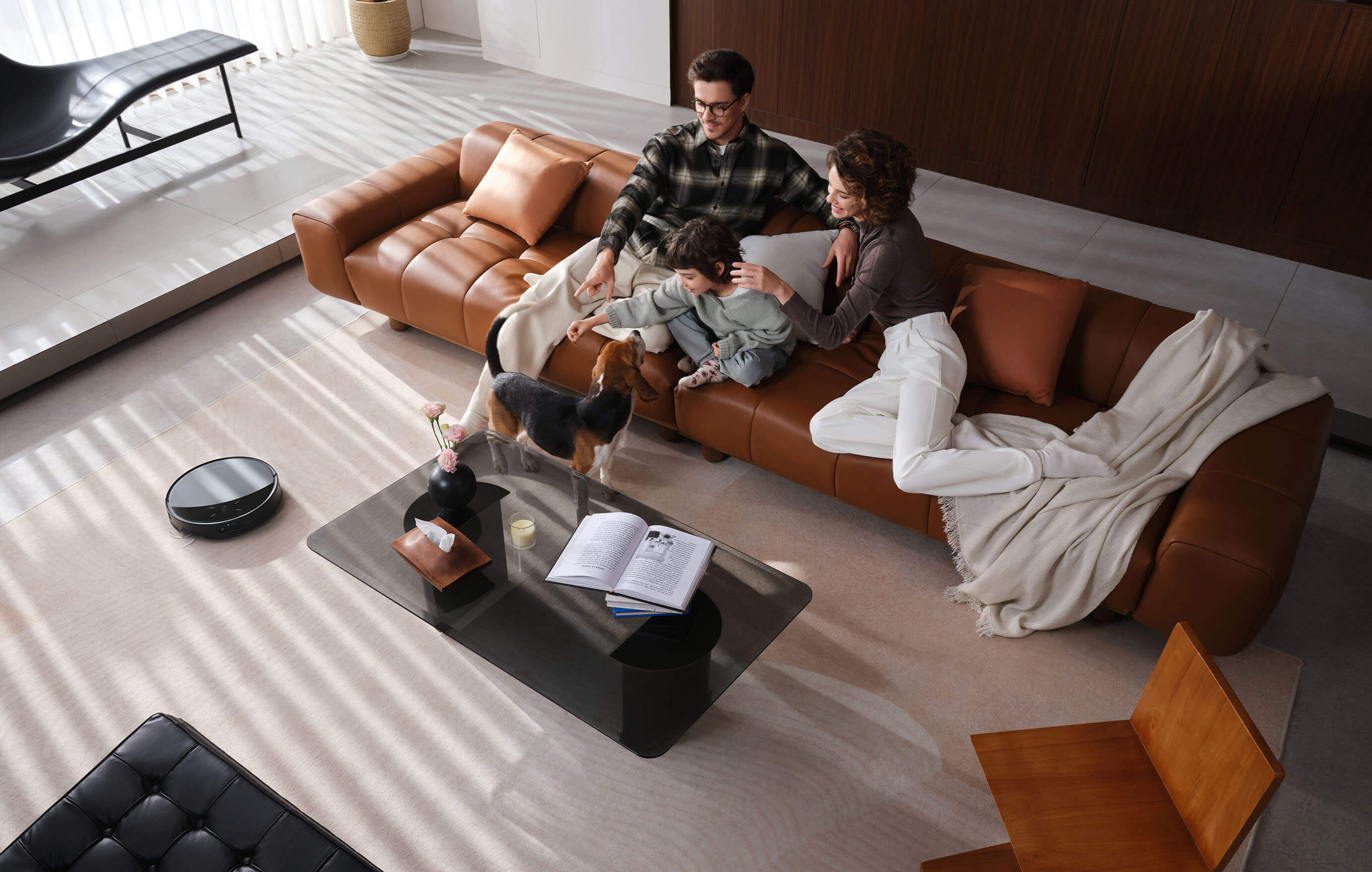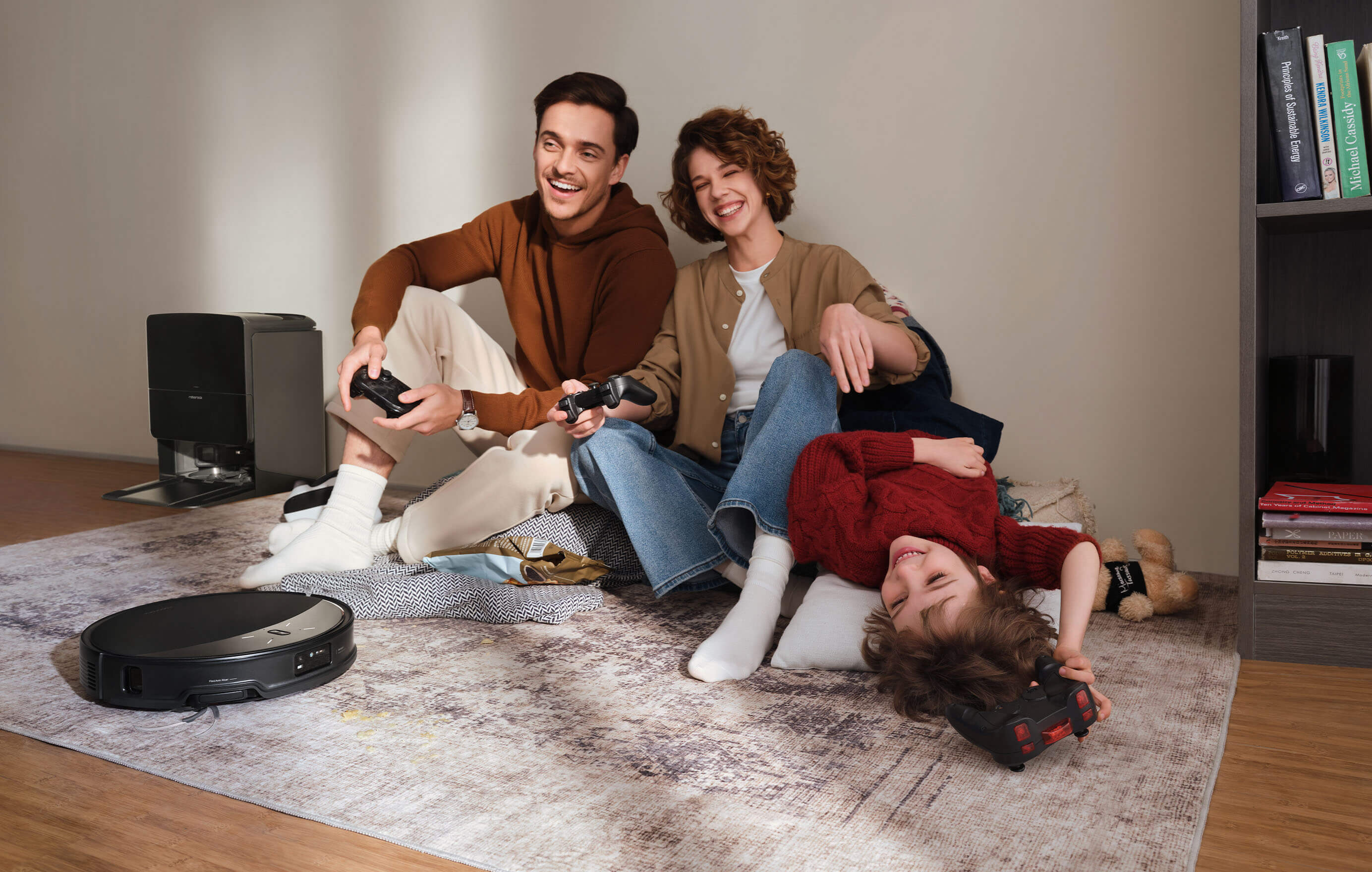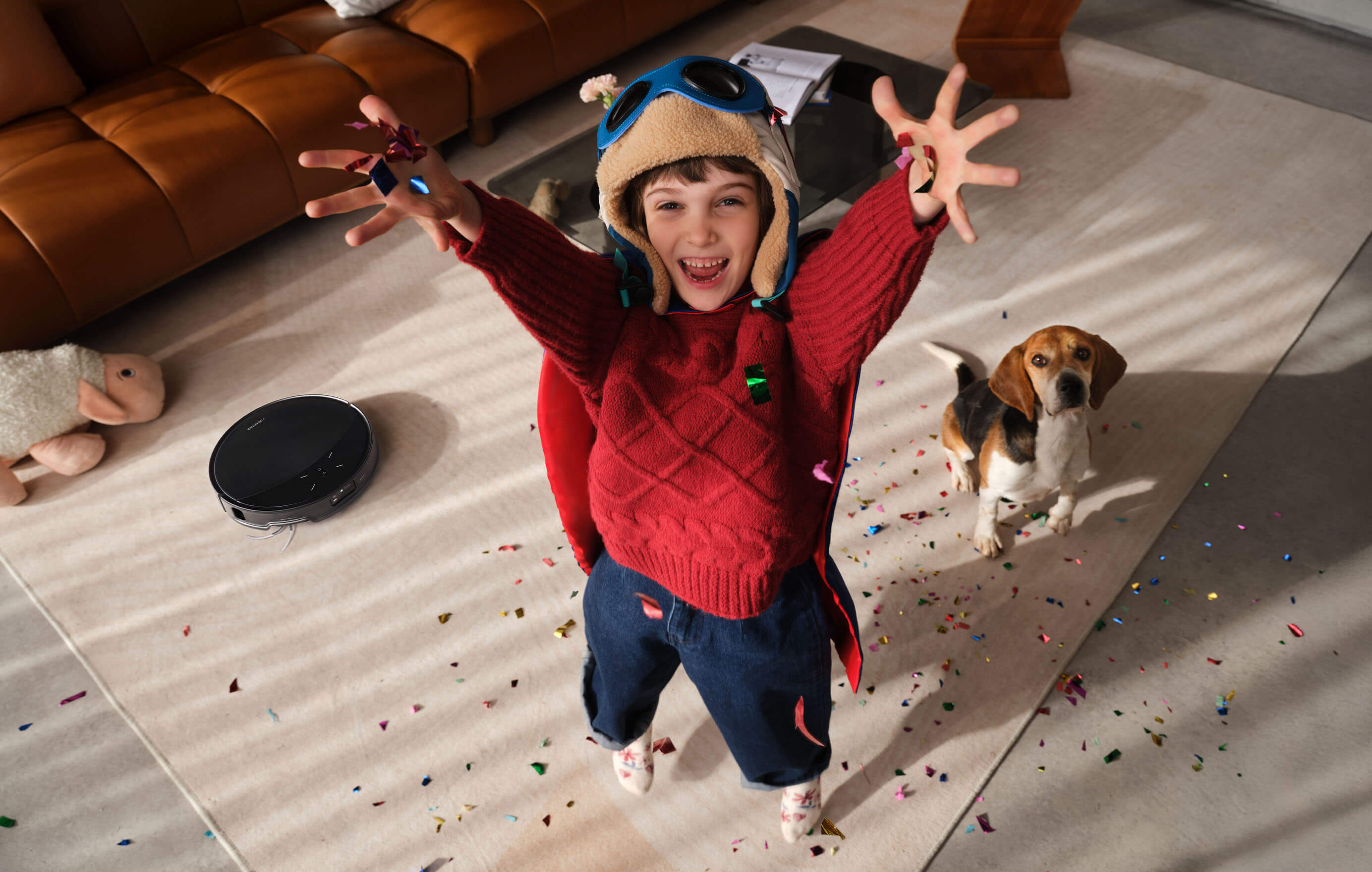 Ao se aproximar dos seus animais de estimação, o robô interrompe a escova principal e desvia antecipadamente para não assustá-los. Além disso, ele aumenta a sucção ao limpar ao redor de acessórios dos animais de estimação para garantir uma higienização completa.18