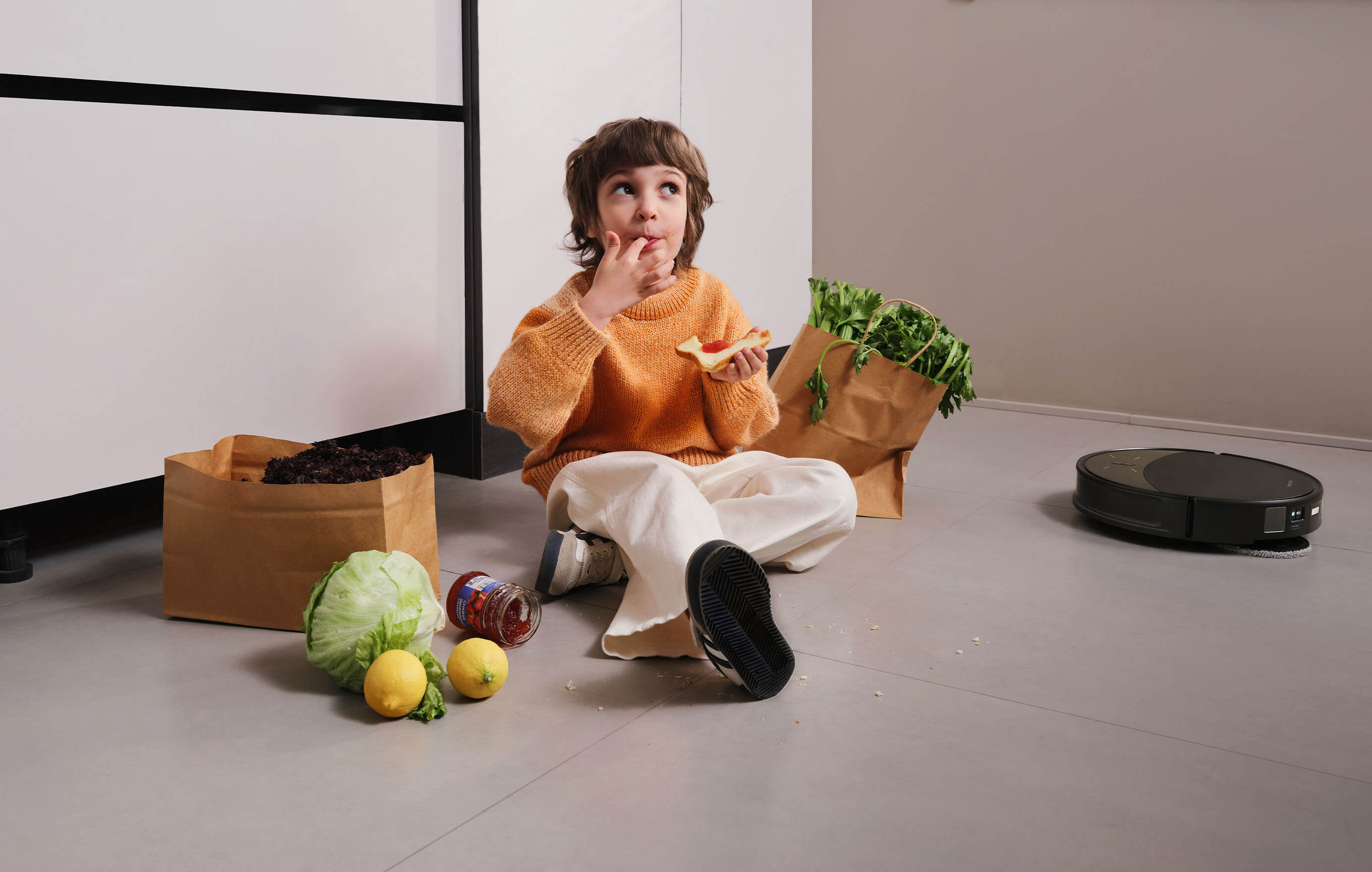 Cruza desníveis de até 4 cm e amplia a cobertura de limpeza graças ao chassi elevável.